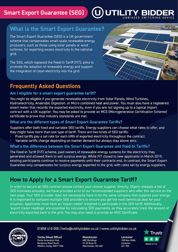 To learn more, click the link to read our Smart Export Guarantee (SEG) Explained guide.